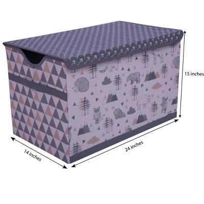Your kiddo will learn to keep their space/playroom/gameroom/bedroom organized with the Knock-Down Storage Toy Chest from Bacati. Designed in a rectangular silhouette with Lid, this kids storage toy chest is great for storing anything from comic books or board games to small toys or craft supplies, while the closed lid-top design gives them easy access to its contents, and the two side handles make it easy to carry from one place to the other. Featuring a Bacati signature prints and pattern, it brings a sweet complement to their room decor. Great for stashing under their desks or in closets, it features a foldable design for efficient storage when not in use. Many cordinating items available to purchase separately in this Bedding Collection by Bacati. Size: 15 Inches (H) x 14.5 Inches (W) x 24.5 Inches (D)