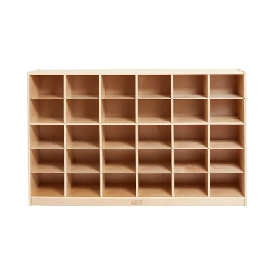 Keep your classroom or playroom uncluttered with the ECR4Kids 30 Cubby Mobile Tray Storage Cabinet with Scoop Front Storage Bins. Kids and adults can organize and store toys, games, building blocks, and school supplies that may otherwise be forgotten. Designed to grow with little ones, this storage cabinet with 30 bins helps parents, teachers, and educators keep small items within reach. Give children their own separate cubby at school to store art projects, homework, and personal belongings. Durable plastic bins feature rounded edges, an easy-to-grasp scoop front handle, and a curved interior to simply remove contents. Lightweight bins are easy to pick up and carry between activities. The low-profile open-face shelves encourage little ones to select their favorite activity independently, introduce organizational skills, and clean up when playtime is over. Four casters are included for mobility; move the storage unit from a hallway to the art room. The shelving unit is constructed from sustainably harvested birch plywood with a tough UV lacquer that seals the wood surface and resists scratching. A UV inhibitor makes furniture resistant to ultraviolet light and yellowing. Birch plywood is extremely durable and will hold up to everyday use in an early childhood environment.