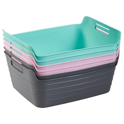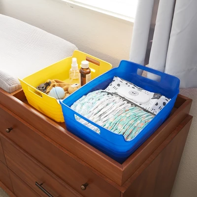 Keep your space organized and clutter-free with Bendi-Bins. This 6-piece set of soft, flexible plastic bins are the perfect choice for any environment in need of extra storage, including the classroom, children’s bedrooms, kitchen cabinets, bathrooms, laundry rooms and offices. Durable design makes these great for holding toys, art supplies, water sensory toys. Built-in handles make it easy to carry and transport items. When empty, bins nest for space-saving storage. These storage bins are GREENGUARD [GOLD] Certified for low VOCs and CPSIA compliant.This 10-pack of versatile large storage bins comes with lids to keep classroom supplies, sensory toys, crafting items, kitchen and office supplies contained and clutter free.