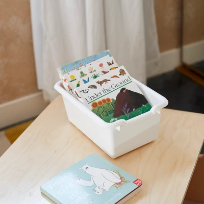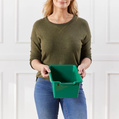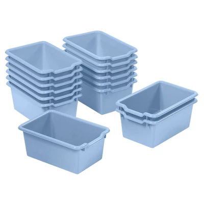 Keep your classroom and home organized, tidy, and efficient with ECR4Kids Scoop Front Storage Bins. The sturdy plastic bins are designed for everyday use to keep small items contained off the floor. Teachers, educators, and parents can utilize bins to store books, toys, manipulatives, and games. The open bin design displays and provides easy access to contents. Organize stories and label bins by reading level, theme, or holiday, encouraging children to independently select their favorite story and clean up during playtime. Personalize trays in classroom cubbies for children to store art projects, individual items, homework, and more. The Scoop Front Bins provide a flexible storage solution with endless possibilities for use from the garage to the kitchen pantry, or nursery. Durable plastic bins feature rounded edges, an easy-to-grasp scoop front handle, and a curved interior to simply remove contents. Lightweight bins are easy to pick up and carry, transporting from a storage cabinet to a play space. Bins nest to save space, and built-in stack supports prevent locking when empty. Use as standalone storage or pair with ECR4Kids storage lockers, cubby units, or tray cabinets; sold separately. The one-piece all plastic design comes fully assembled.