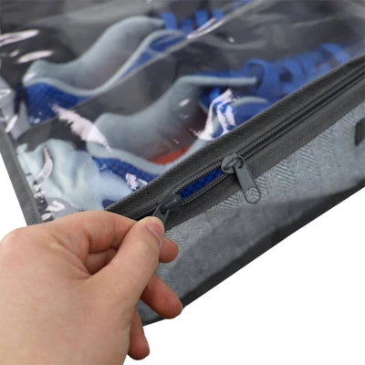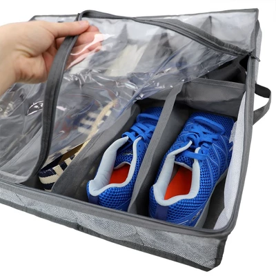 Perfect if you don’t want to have your favorite shoes from getting dirty. The durable zipper closure seals in your collection of shoes preventing dust from accumulating. With multiple compartments you can fit up to 12 pairs of shoes. A clear top lets you easily see what is inside without having to unzip the entire organizer, while the nylon handles help to pull the organizer out from underneath the bed for easy access. While primarily used for storing your collection of shoes, the organizer is also perfect for packing away holiday ornaments. Spot clean. The unit is easily clean. Simply wipe with a dry cloth. Item dimensions may differ slightly from actual product due to manual measurement. Color and finish may differ slightly from image due to differences in monitor displays.