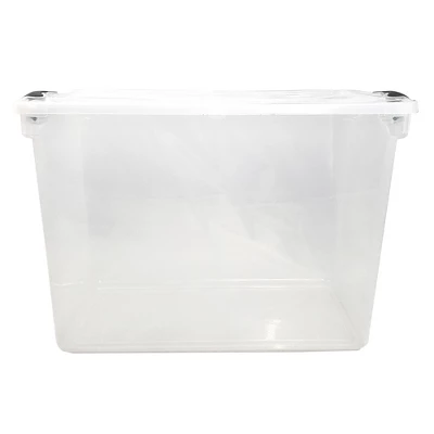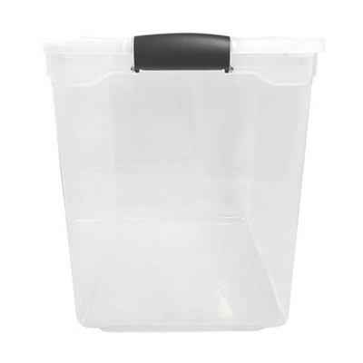 - SPECIFICATIONS: Material: Plastic; Color: Clear Base, Anthracite Gray Latch; Dimensions (L x W x H): 28.75 x 16.00 x 18.25; Weight: 6.50 pounds
