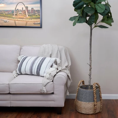 This stunning Terra Basket from Household Essentials is handwoven from natural cattail and paper rope. It will transform any bedroom or living space by stylishly stowing away throws, textiles, or bits and baubles. Neatly corral any bulky, rarely used, or unsightly household items in the ample storage space, and utilize the sleek, integrated handles for easy mobility. The structured metal frame ensures the strength and longevity of the piece. Timeless detailing and natural appeal will carry this sophisticated Terra Basket through every home refresh. Note: Size and color may vary slightly as it is made from natural materials.