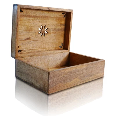 - Our wooden storage box is crafted from 100% real mango wood & features a hinged lid so you dont have to fumble with a lid when securing or removing it.