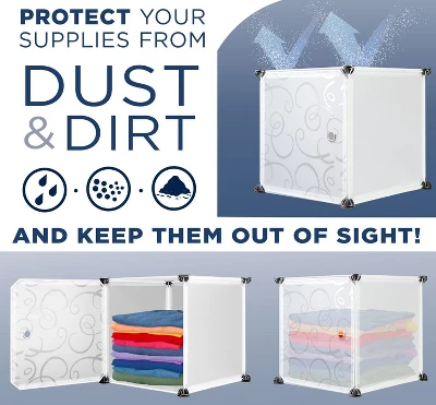 This storage cube organizer can be installed in a variety of ways in a wide range of spaces. The stacking modular cubes can be customized to fit your storage needs. Features doors to protect your items from dirt and dust, as well as to keep your items hidden from sight. Stay organized with these modular storage cubes.