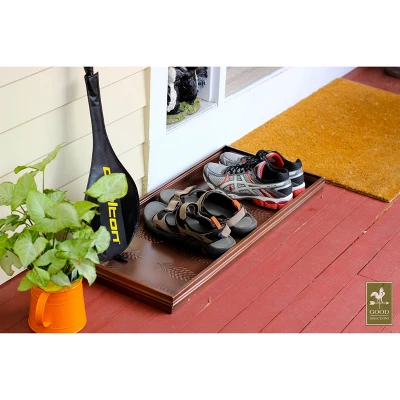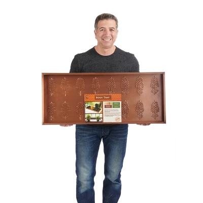 This multi-purpose boot tray is as versatile as it is attractive! Our customers use it for shoes in the entryway or mudroom to keep floors clean; as an attractive home for potted plants; or as a neat, no-mess zone for pet bowls. Pads on bottom prevent sliding. Dimensions: 34″L x 14″W x 2″H.