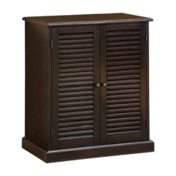 Landen Mid – Century Modern 2 Doors Shoe Storage Cabinet Walnut/Brown/Gold – Baxton Studio