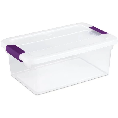 The 15 Quart ClearView Latch Box features ergonomic latches that attach the lid securely to the base, yet are still easy to unlatch. The see-through base and lid allow contents to be easily identified from any angle, and multiple bases are able to stack on top of each other. This latch storage box is ideal for storing blankets and other bulky items around the home. Sterilite ClearView Latch Boxes feature contemporary styling with ergonomic, color coordinated latches. The see through design allows for easy viewing of items. Indexed lids allow containers to stack securely for efficient storage. Common lids are used on select sizes to simplify and improve organization. Latch color adds visual appeal to everyday assortment.