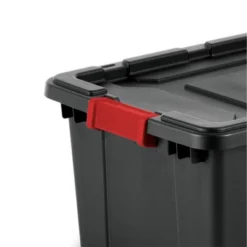 When it comes to organizing your home or office spaces look no further than the 4 pack of Storage Tote Bins from Sterilite. These multipurpose bins feature a spacious 37-quart capacity to hold all your seasonal decor and more. Ensure your personal belongings are kept secure with the gasket seals that line the lids. With secure latching lids, your favorite things will remain safely inside and not be ruined by unexpected elements. Built with a clear base and lid, you’re able to conveniently identify the contents inside, so you won’t have to spend time digging around to find what you’re looking for. The thin design of these totes makes them ideal for under-bed storage to maximize space while the handles provide you with a simple transporting solution. Enjoy a clean, clutter-free closet, playroom, and home office with the versatile storage that the 4-pack of Clear Plastic Home Storage Tote Bin with Secure Lids from Sterilite provides.