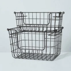 Sullivans Mesh Kitchen Storage Metal Bin Set Of 2, 9″H White